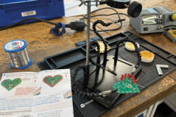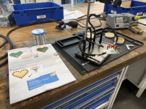 Noch spannender wurde es beim zweiten Projekt. Auf einer Platine wurde ein Herz aufgebaut, das mit vielen kleinen LEDs bestückt ist. Damit alles am Ende auch leuchtet, mussten die Lötstellen absolut sauber gesetzt werden. Ein echtes Highlight, das nicht nur Technik, sondern auch Kreativität verlangte.