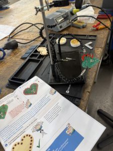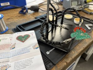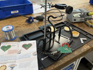 Noch spannender wurde es beim zweiten Projekt. Auf einer Platine wurde ein Herz aufgebaut, das mit vielen kleinen LEDs bestückt ist. Damit alles am Ende auch leuchtet, mussten die Lötstellen absolut sauber gesetzt werden. Ein echtes Highlight, das nicht nur Technik, sondern auch Kreativität verlangte.