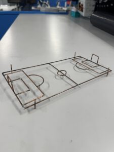 Als erstes Projekt entstand ein kleines Stadion aus Kupferdraht. Mit viel Geduld und Feingefühl löteten die Azubis Spielfeld, Tore und Linien zusammen – am Ende ein richtig cooles Modell, das zeigt: Mit Präzision lässt sich fast alles verbinden.